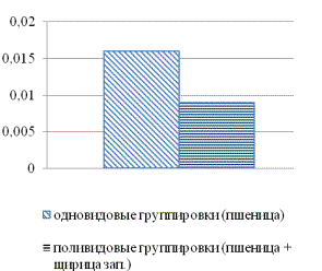 Рис. 1. Интенсивность фотосинтеза в одновидовых и поливидовых