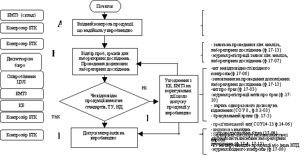 вхідний контроль продукції, що поступає для виробництва основної продукції, які