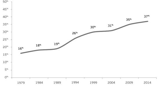 зростає і станом на 2014 рік дорівнює 37%.