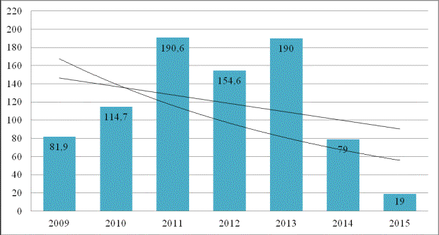 тренд, в соответствии с рисунком 4. В 2014 году прямые иностранные инвестиции в