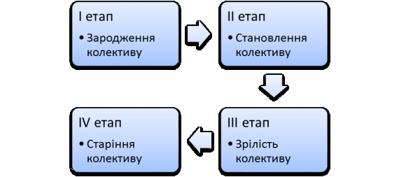 колективи проходять через ряд послідовних етапів (рис. 1).