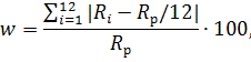 – показник нерівномірності річного розподілу атмосферних опадів, %;