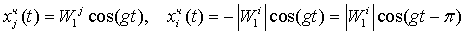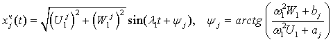 Coefficients movements of autonomous oscillators motion coefficients xj(t), |