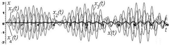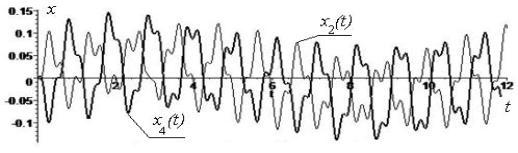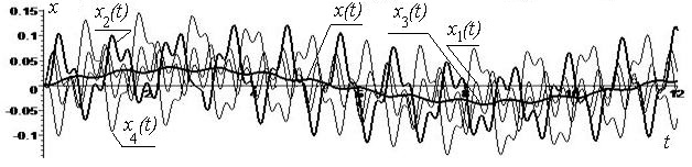 , mechanical system íà a, x1(t), x2(t) è x4(t) in phase, with similar