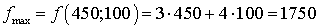 виробляти 450 полок виду А та 100 полок виду В, при цьому прибуток складе 1750 грошових одиниць, та залишиться невикористаними 1200 хвилин (20 годин) машинного часу.