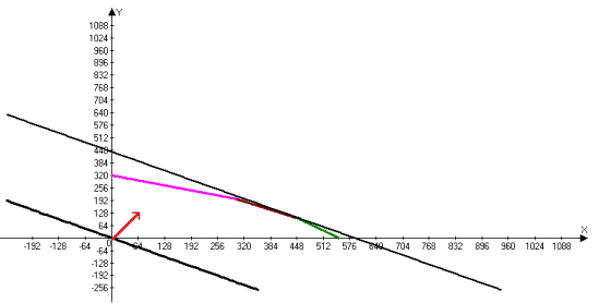 Рухаючи цю пряму паралельно саму до себе, фіксуємо її крайнє положення, яке