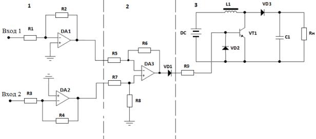 DA3 на рис. 2 (участок 2). В усилителе DA3
