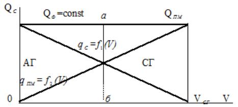 режиму АГ, правая (вправо от линии аб) режиму синхронного генератора СГ.