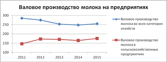 2015году увеличилось на 3 процента по сравнению с 2014годом. Валовое производство молока во всех