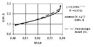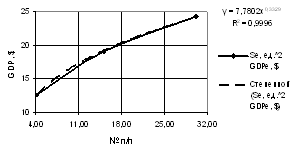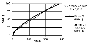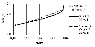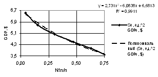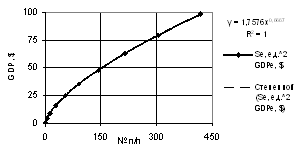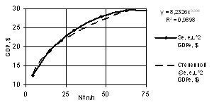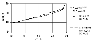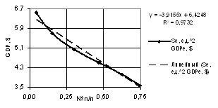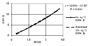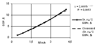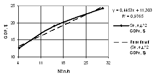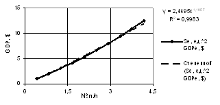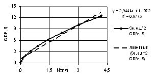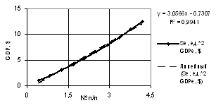 of the GDP one may use both linear dependence with the correlation factor of R2 = 0.9941,