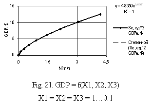 Fig. 20. GDP = f(X1, X2, X3) Õ1 = Õ2 = Õ3 = 1…0.1 |