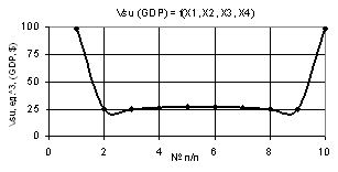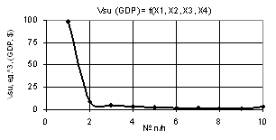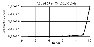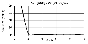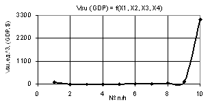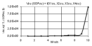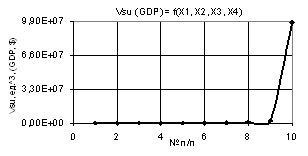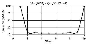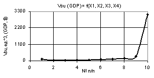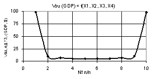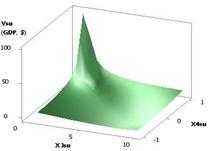 рисунка 21 видно, что построенная кривая Vsu (GDP) при Х1 = 1…10, Х2 = Х2 = 1…0,1, Х4 = 0,99…–0,99 внешне