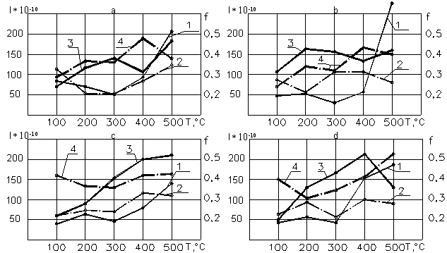 relaxation mechanism change takes place. Besides, one cannot but admit cymbate dependency character of wear intensity (I) and