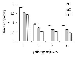 до стресових умов існування дослідних рослин порівняно з хлорофілом b, а співвідношення а/b коливається від 2,3