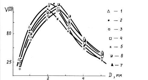 числа капель по диаметру для растворов