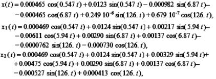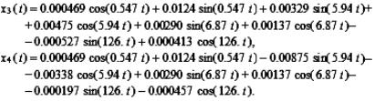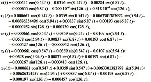 0.009 м, b1 = 0.03 м/c, b4 = 0.09 м/c, g = 40p рад/с, w= 3.4986 рад/с, w1=5.9362рад/с, l1= 5.9362 рад/с, l2= 6.8687 рад/с, l3=0.5466рад/с, F1 = 23.13