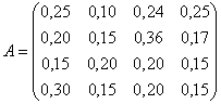 Векторы выпуска продукции и матрица коэффициентов прямых затрат имеют вид: