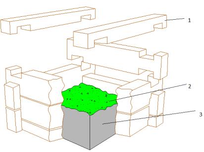 development workings includes a cylindrical timber-concrete blocks mounted on