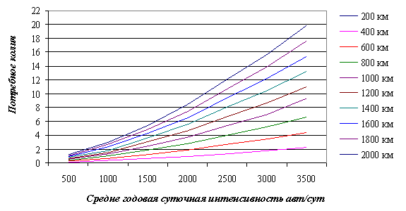 мотелей в зависимости от длины участка и интенсивности транзитного движения