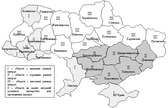 регіони з рівнем витрат близьким до середнього по Україні, третя група –