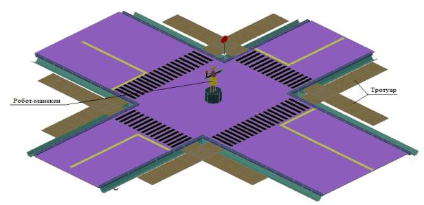 на регулируемом участке пересекающихся с ним в одной плоскости пешеходных
