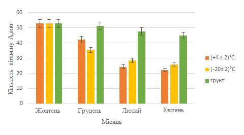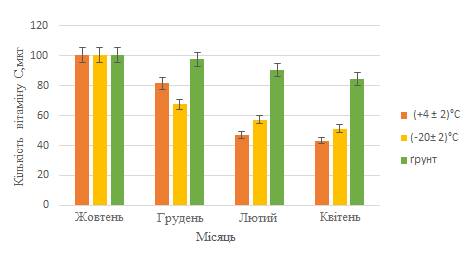 які зберігалися за температури (–20±2)ºС, вміст вітамінів також знизився