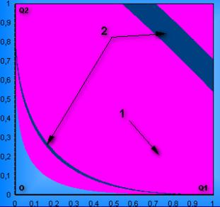 - область устойчивости в линейном приближении; 2 – неустойчивость. |