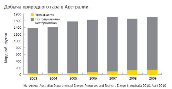выросла с 2% в 2002 году до 9% в 2009-м, когда объем добываемого угольного газа