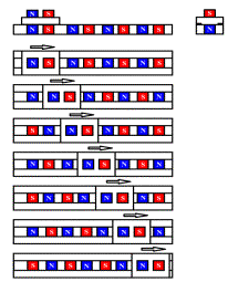 необходимо упорядоченное переключение полюсов электромагнитов в направляющих
