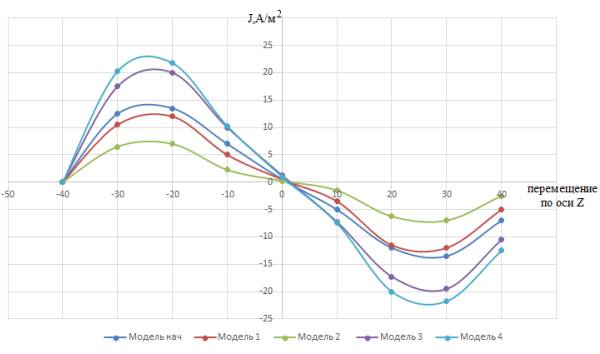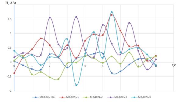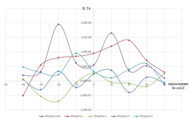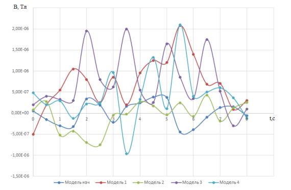 значения параметров индукции магнитного поля наблюдаются у модели 2. Таким