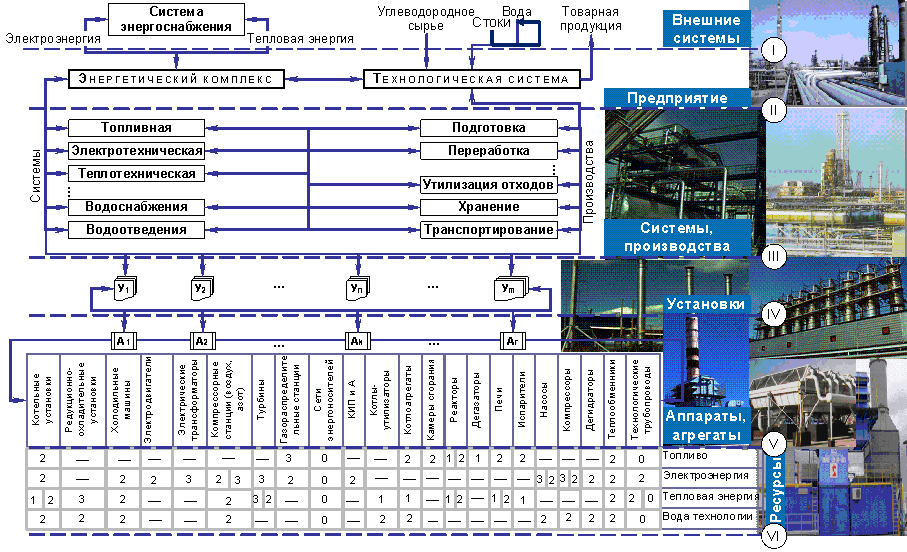 · III – систем ЭК и производств ТС с их установками; при этом системы ЭК и производства ТС включают ряд установок IV уровня, содержащих энерготехнологические агрегаты (элементы V уровня), относящиеся к двум элементам II уровня одновременно – к ТС и ЭК;