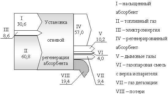регенерированного абсорбента). Остальные потоки эксергии – дымовых газов,