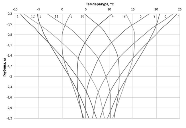 температуры грунта на разных глубинах в