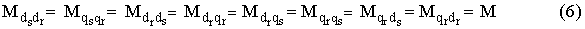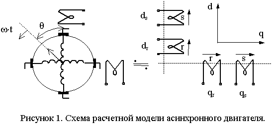 В расчетной модели АД (рис. 1) воздушный зазор между ротором и статором равномерный и магнитная цепь по осям d и q симметрична, от угла поворота ротора q зависят лишь взаимные индуктивности пар обмоток. В этом случае магнитный поток, сцепленный с парой обмоток, изменяется по косинусоидальному закону