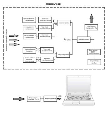 преобразователем; микроконтроллеров и радиомодуля передачи информации на
