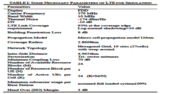 LTE Таблице I