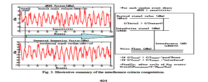 реализация алгоритмов статистической оценки ЭМС ССС, методом Монте-Карло представлена в рекомендованных международным союзом электросвязи (МСЭ) [8-14] пакетах программ SEAMCAT-3 и SEAMCAT-4 (Spectrum Engineering Advanced Monte-Carlo Analysis Tool) Рисунок. 3 иллюстрирует принцип вычисления вероятности помех в рецепторе
