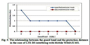 относительной БС LTE и БС WiMAX должен быть по крайней мере 0.8 км, при защитной полосе частот составляющей 1 МГц.