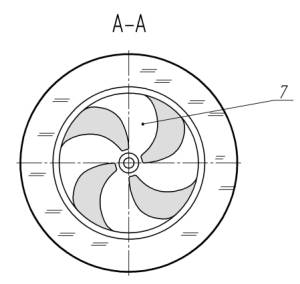 на лопаті 7 крильчатки і примушує крильчатку обертатися навколо вертикальної