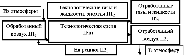 следующих материально – энергетических потоков: П1 извне помещения, Пчп внутри