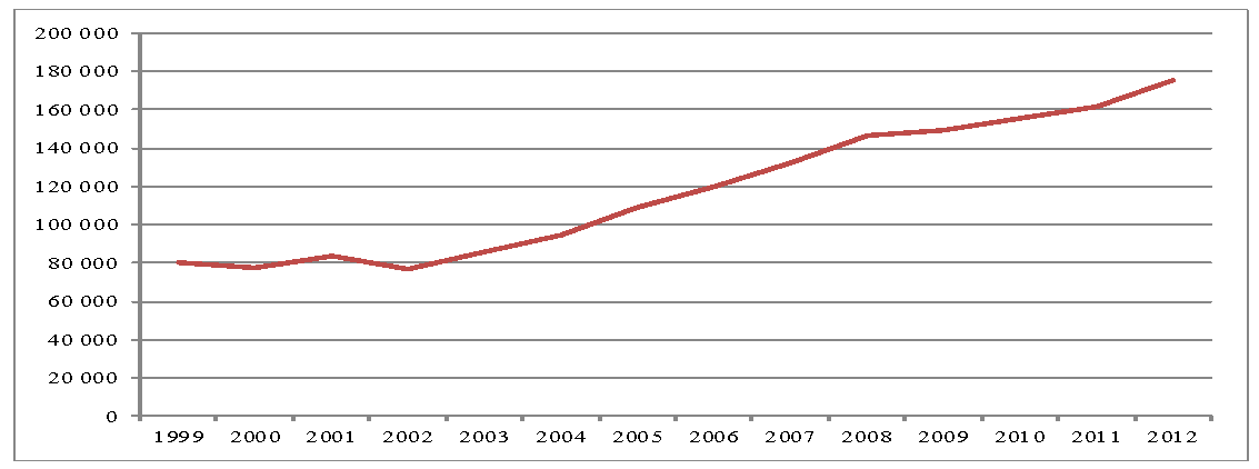between 1999 and 2012 the number of advisors hugely increased (in 1999 there