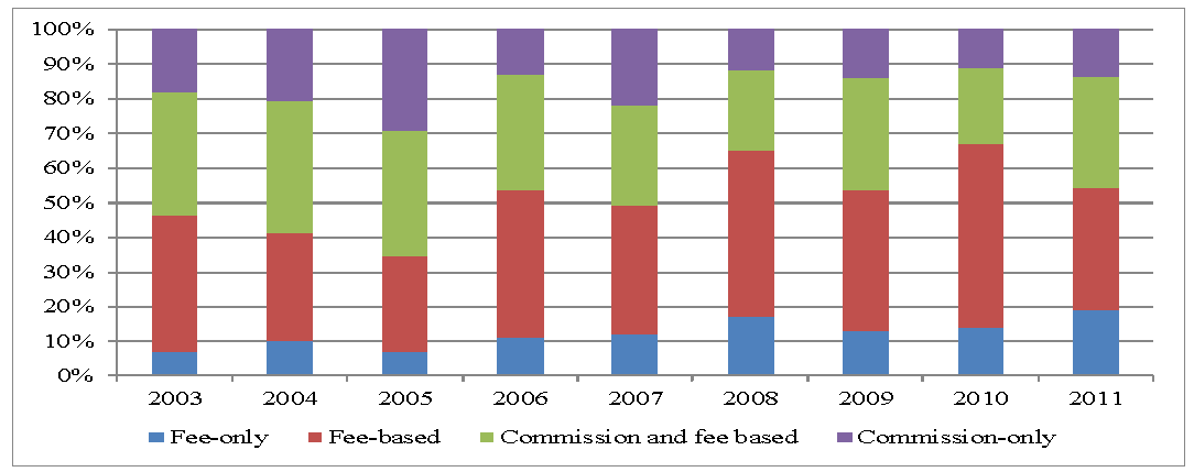2010 the share of fee-only and fee-based models increased to 66%, and