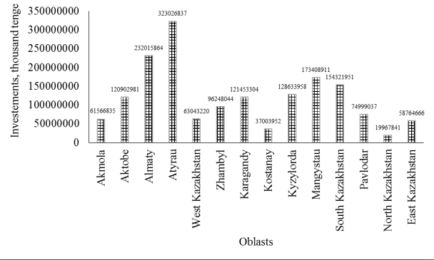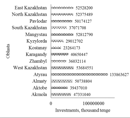 and Aktobe oblasts have the highest indicators for capital stock investments.
