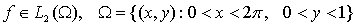берілген Ω={(x,y):0<x<2π,0<y<1} облысында төмендегі