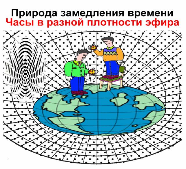и как следствие изменение течения времени (частоты) в разной плотности эфира (рис.3).