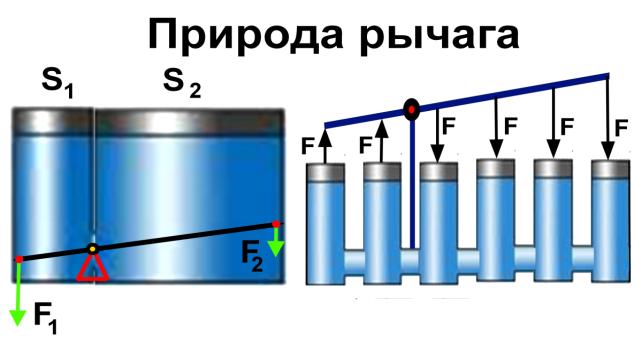 Рычаг представлен как взаимодействие эфира