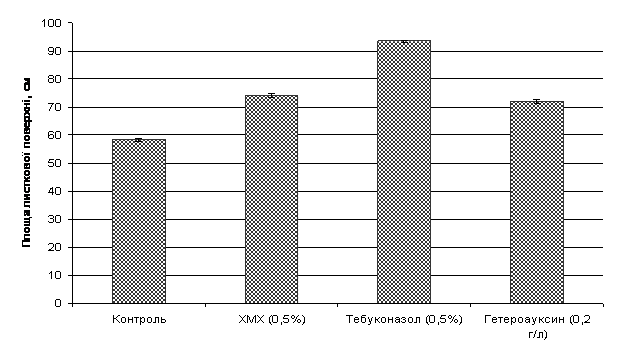 зростання площі листкової поверхні (27%), обробка рослин тебуконазолом