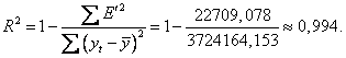 модель объясняет 99,4% общей вариации уровней временного ряда.