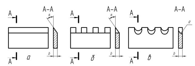 застосовують три типи ножів [2]: плоский із прямолінійним суцільним лезом; плоский із