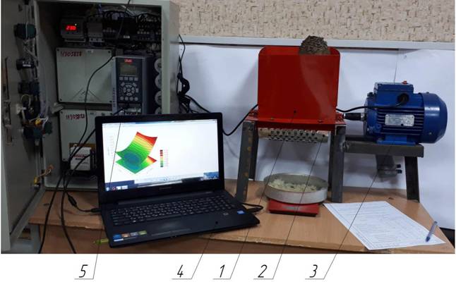 подрібнювача: 1 - експериментальний зразок малогабаритного подрібнювача